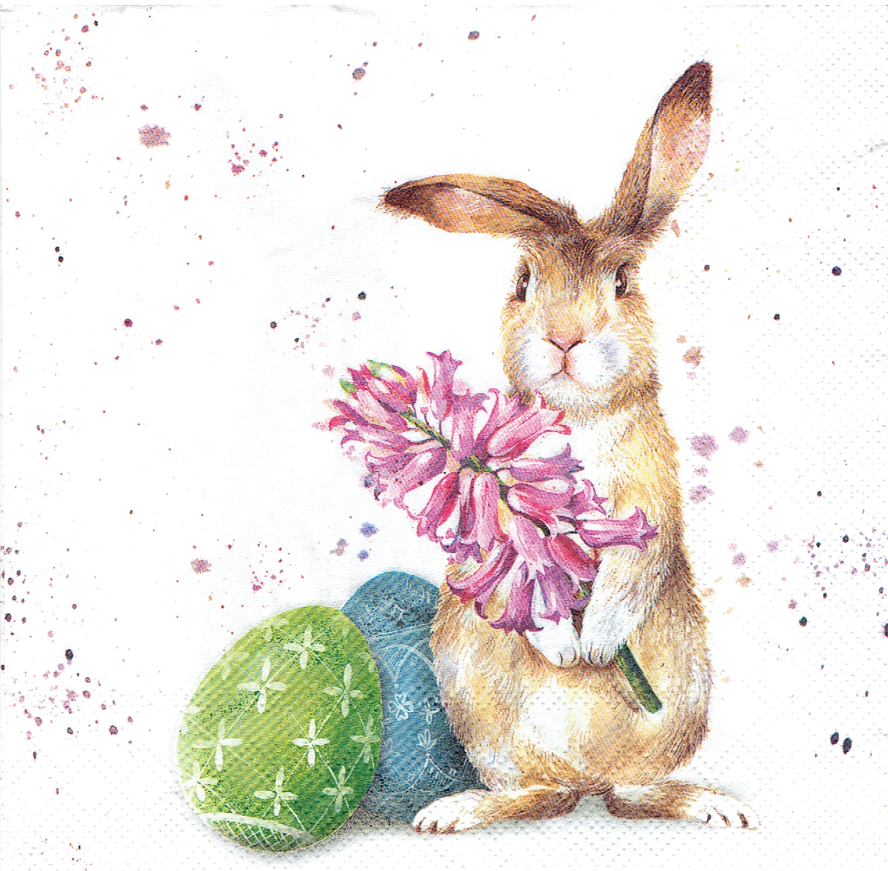 Serwetka decoupage 33x33 cm - zając, zajączek, kwiat, pisanki