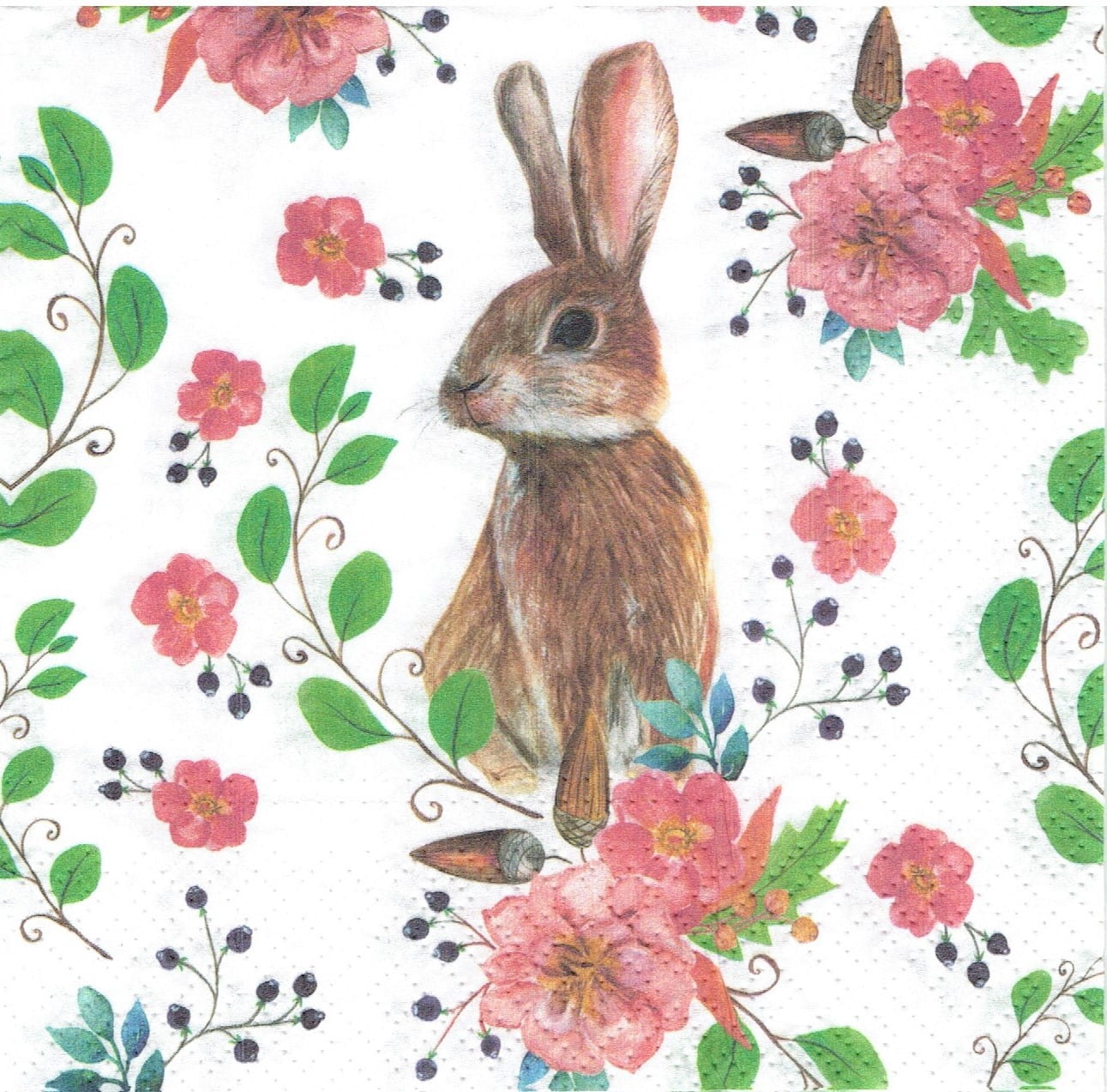 Serwetka decoupage 33x33 cm - zając, zajączek, kwiaty