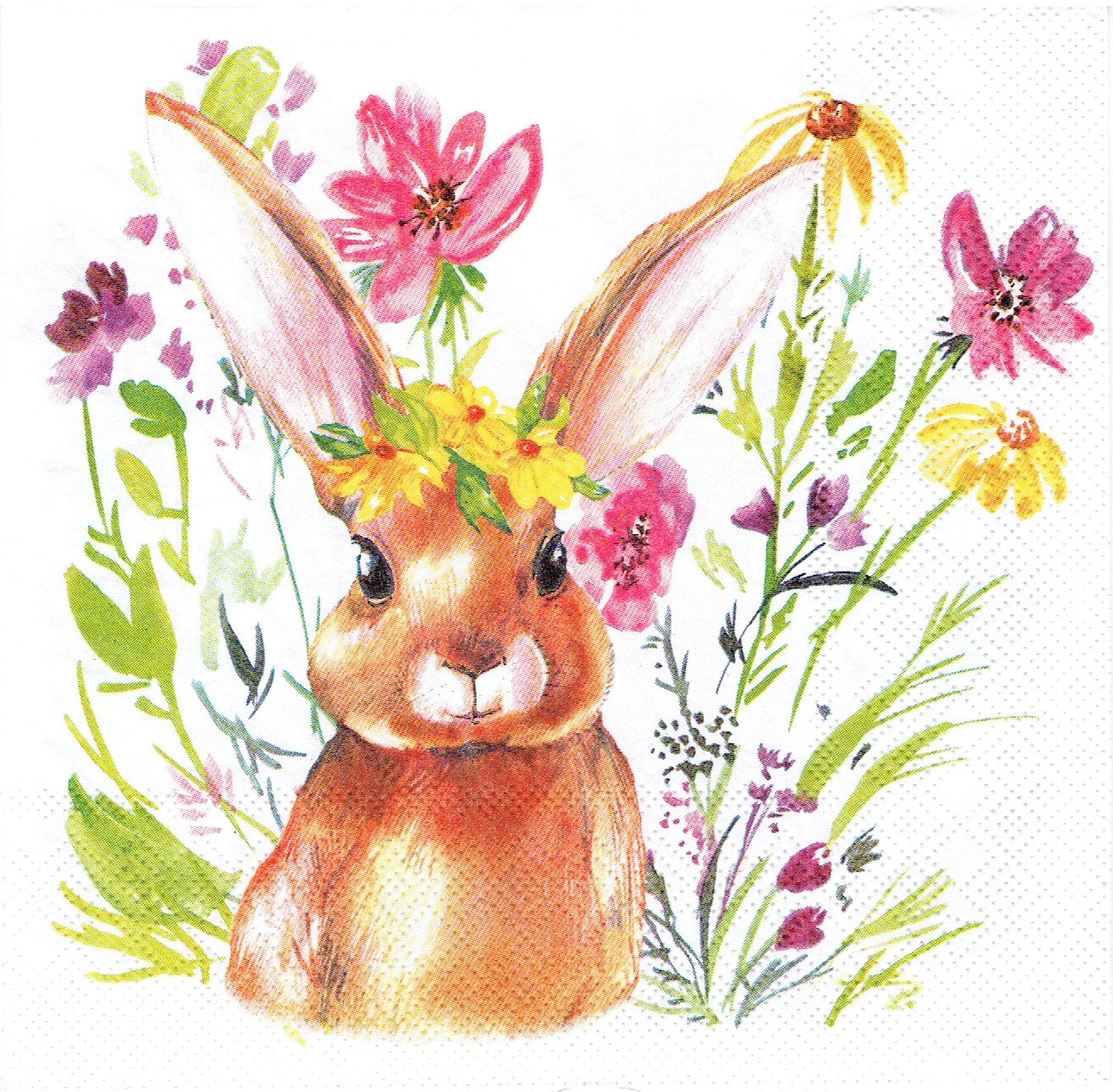 Serwetka decoupage 33x33 cm - zając, zajączek, kwiaty