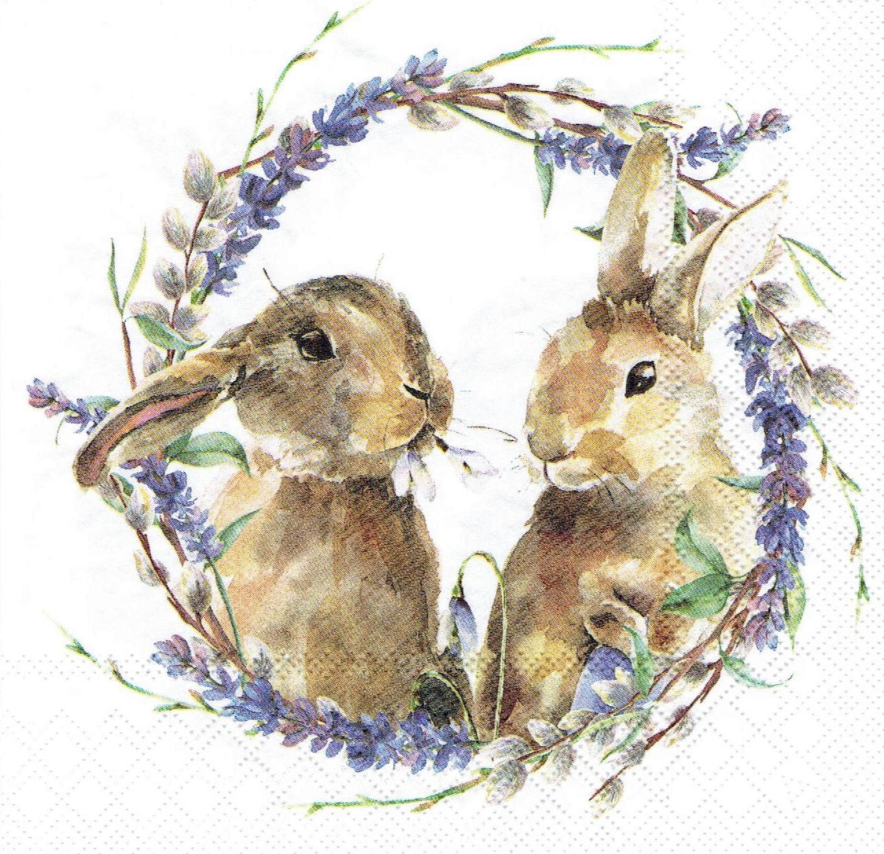 Serwetka decoupage 33x33 cm - zające, zajączki, lawenda