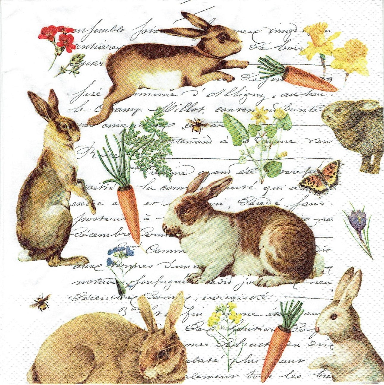 Serwetka decoupage 33x33 cm - zające, zajączki, napisy