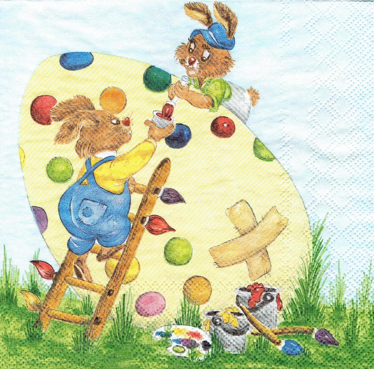 Serwetka decoupage 33x33 cm - zające i pisanka