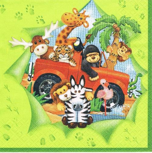 Serwetka decoupage 33x33 cm - zwierzęta na wycieczce