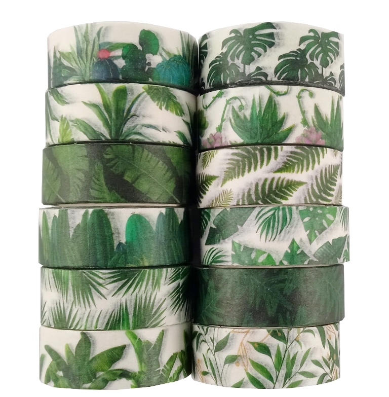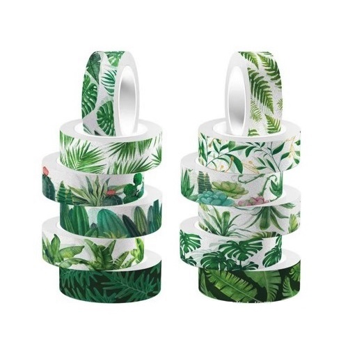Tasiemka samoprzylepna Washi Tape Liście Boho - Zestaw 12 sztuk