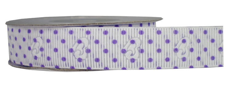 Tasiemka w kropki i wytłaczane serca 9m - fioletowa