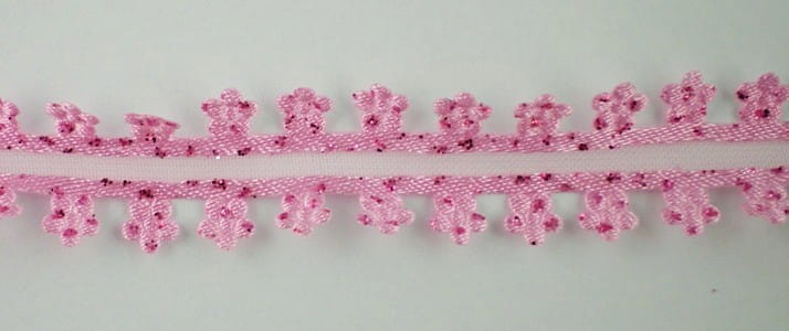 Tasiemka z brokatowymi kwiatkami różowa 0,5m