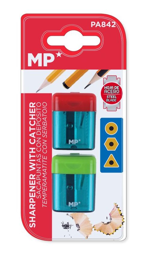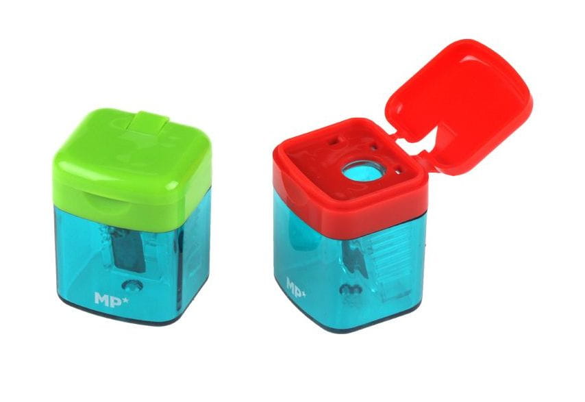 Zestaw dwóch temperówek wyposażonych w pojemniki na ostrużyny.