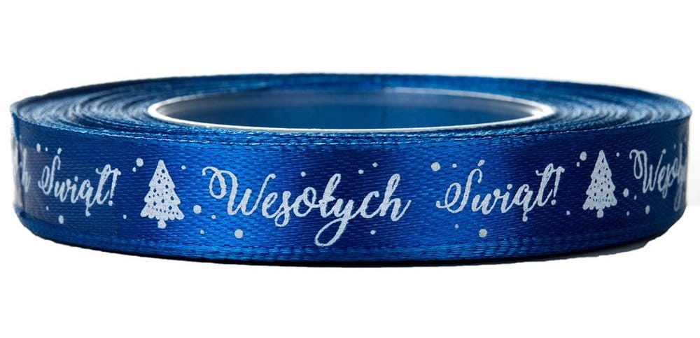 Wstążka tasiemka Wesołych Świąt 12mm 23m - niebieska