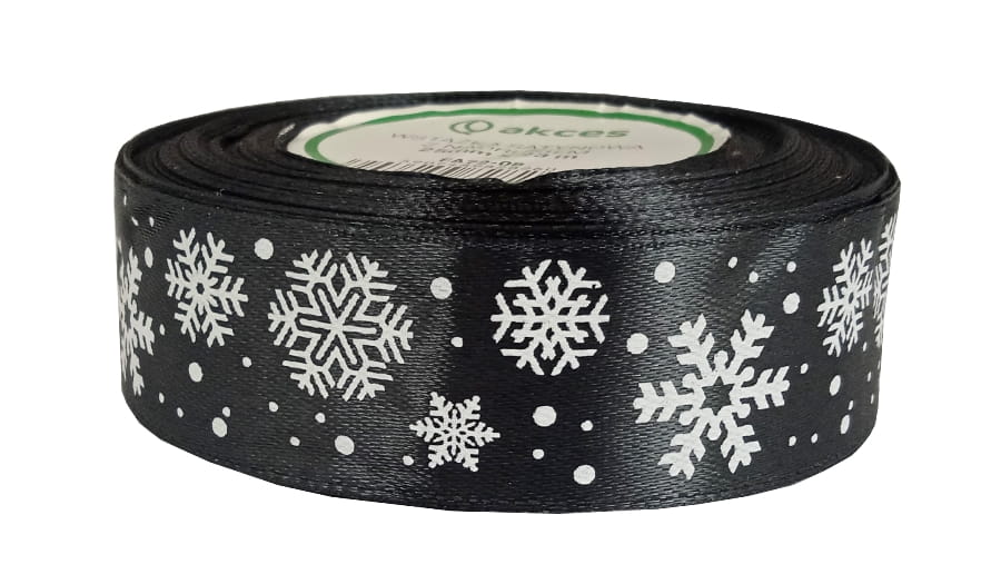 Wstążka tasiemka śnieżynki 25mm 23m - czarna