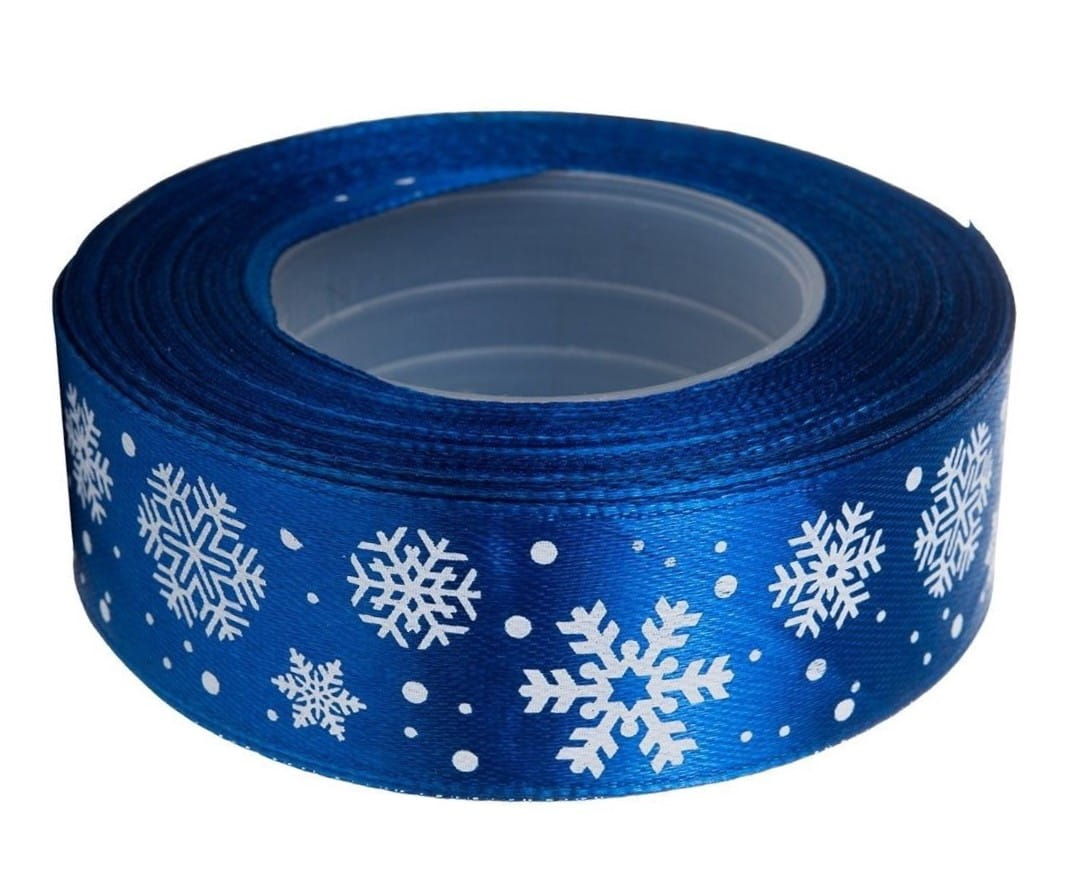 Wstążka tasiemka śnieżynki 25mm 23m - niebieska