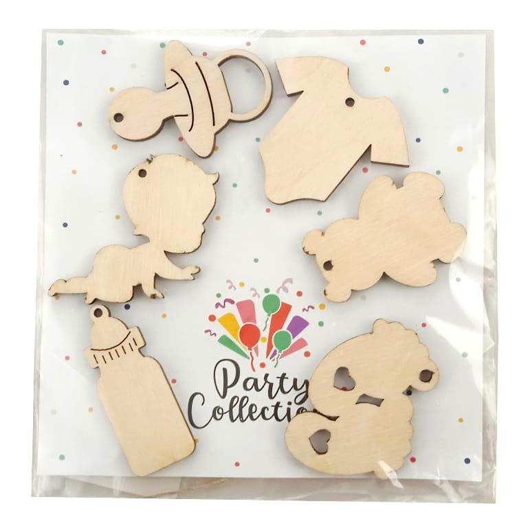 Zawieszki drewniane na Chrzest, narodziny dziecka - zestaw 6 sztuk